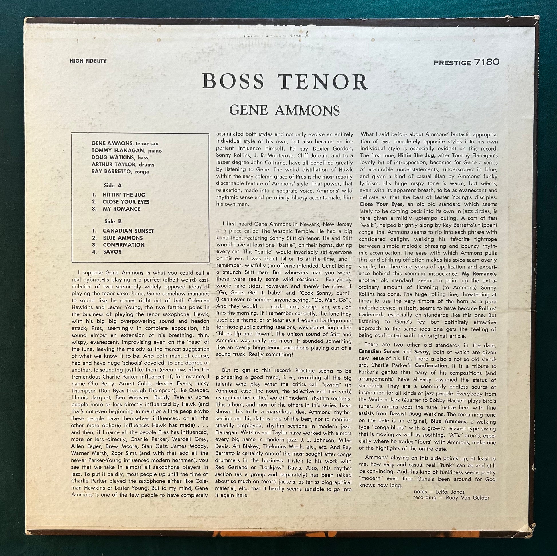Gene Ammons - Boss Tenor 1964 Mono Prestige Gold Label Repress RVG